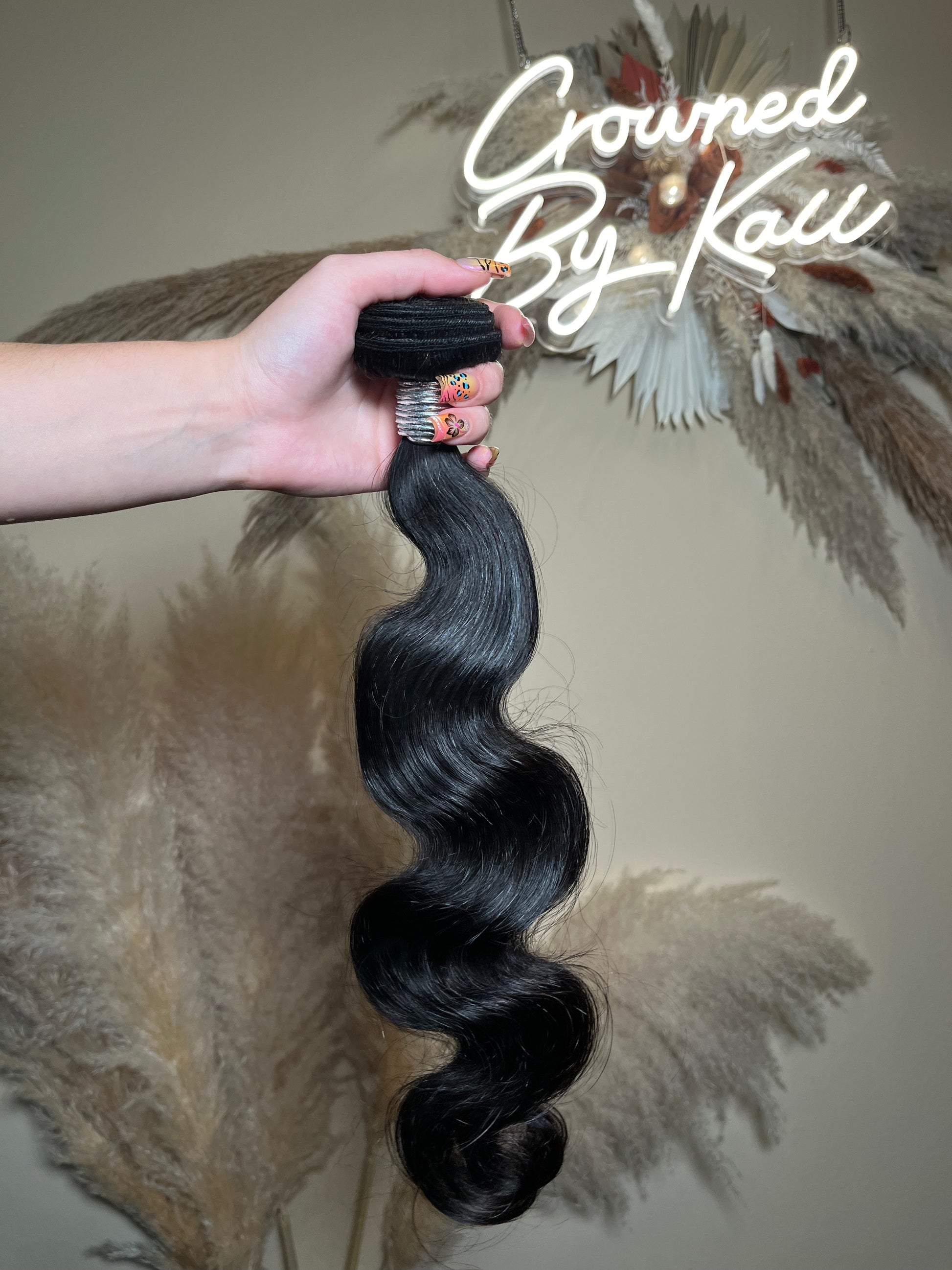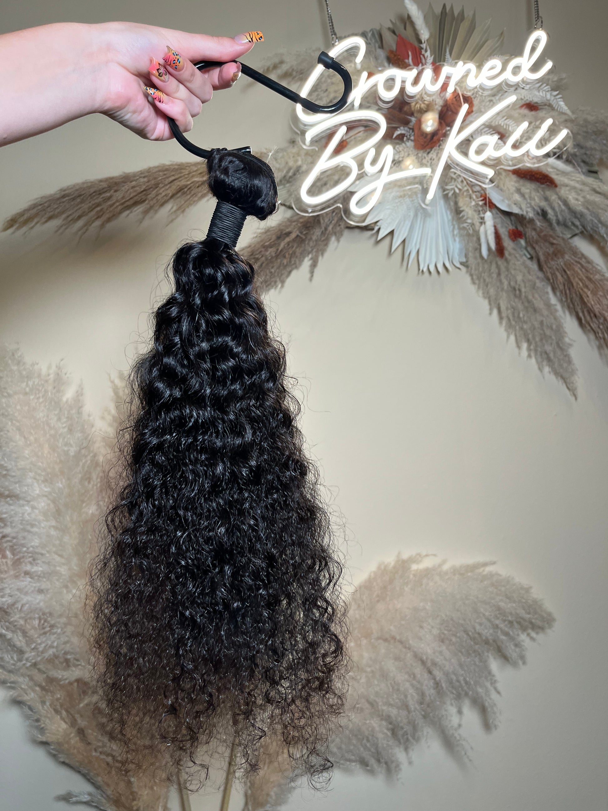 Indulge in Kaii's Juicy 12A Virgin Brazilian bundles. Hair is full and shiny from weft to ends. 12A quality ensures you can bleach, color, and heat style this hair. Available in 4 beautiful textures including Deep Curl, Natural Wave, Straight, and Body Wave.
